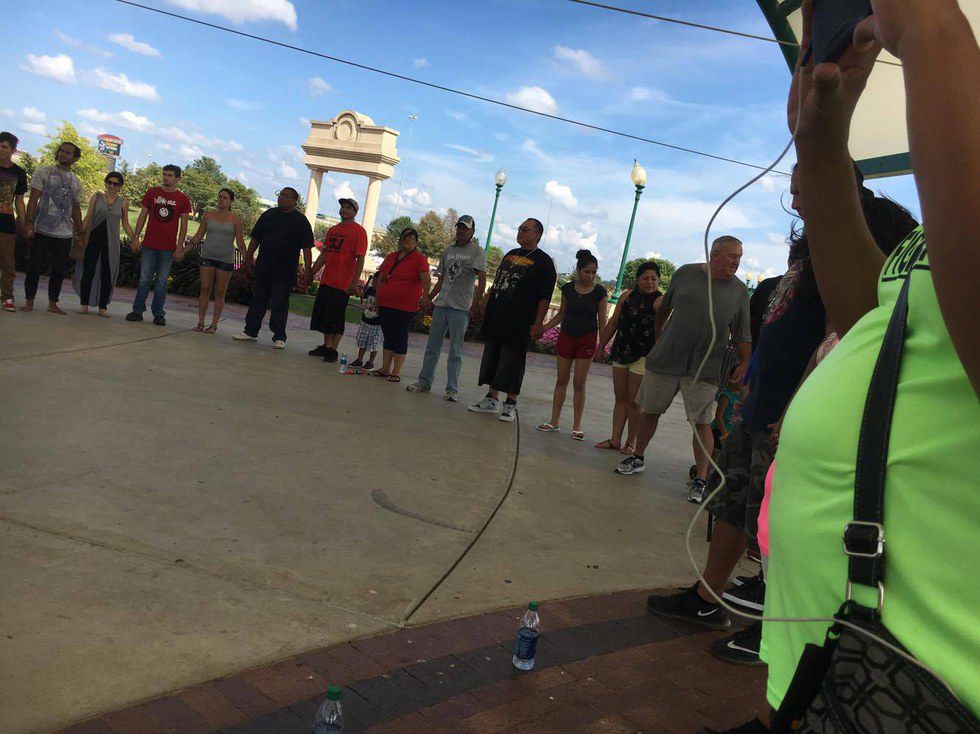 Men and women of all different faiths and backgrounds joined hands to pray an Our Father:
