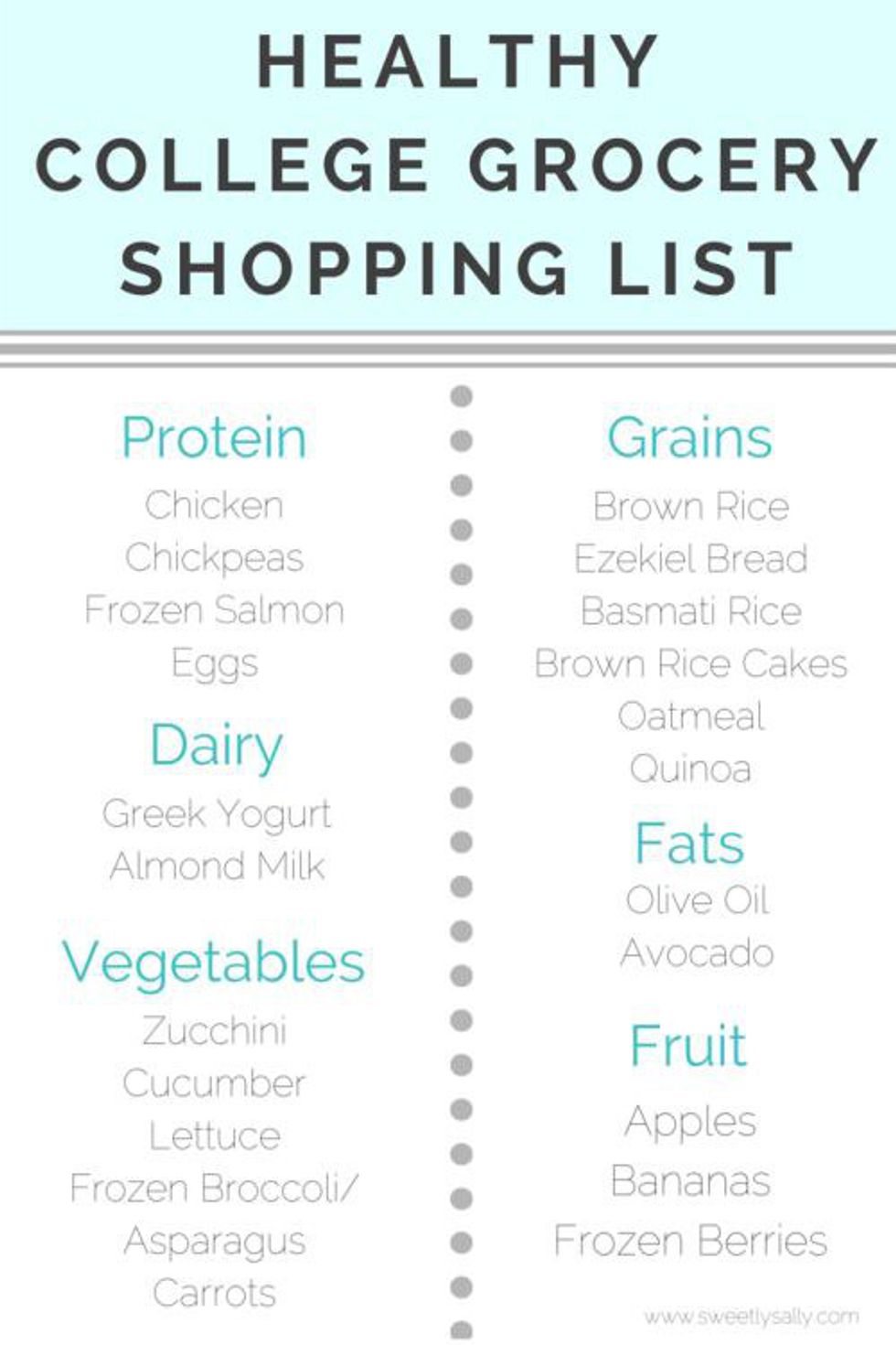 You may feel as though you are spending more when you are at the store, but if you actually tally it up you notice that buying the healthy food from the grocery store is cheaper than a fast food store. Let’s use myself as an example, some weeks I am too lazy to actually make it to the grocery store and eat out instead. When eating out each meal can cost anywhere from $5 to $14. So in a 7-day week that means that I have spent $105 to $294 in food alone (three meals a day). If I wanted to be fiscally conservative with my money, which happens occasionally, I would go to the grocery store and buy enough food for one or two weeks. An ideal grocery list for a college student would look like this.
