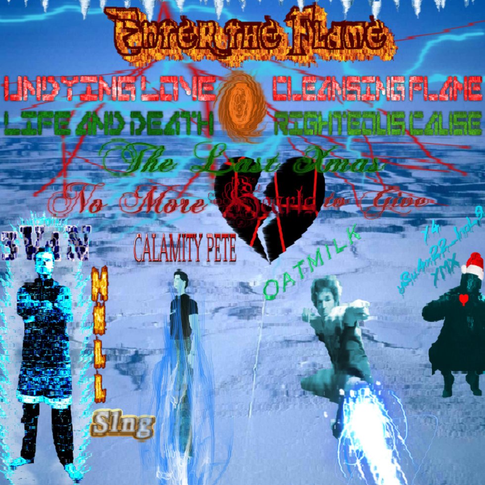 On the topic of me being a size queen when it comes to song length, some of the last stops on the album are longer in duration, and stranger in diction. The most existential song on the album and perhaps the only existential Christmas song to exist is "Xmas Story." Spoken from the unreliable narration of a figure trapped within a snowglobe, this song lightly strokes on what it means to be alive. For Christmas. It makes me wonder, is this caged spirit in the snowglobe willingly, of his own agency, or was it placed there for a reason? What if, and this is a stretch, what if we are within a sort of snowglobe ourselves? We occupy a society increasingly shaken and bombarded with the elements of our environment; in a world where every day feels more and more like a simulation, are we being shaken by a cosmic force with a cruel, sick sense of humor? Ask Enter The Flame, I couldn't tell you.