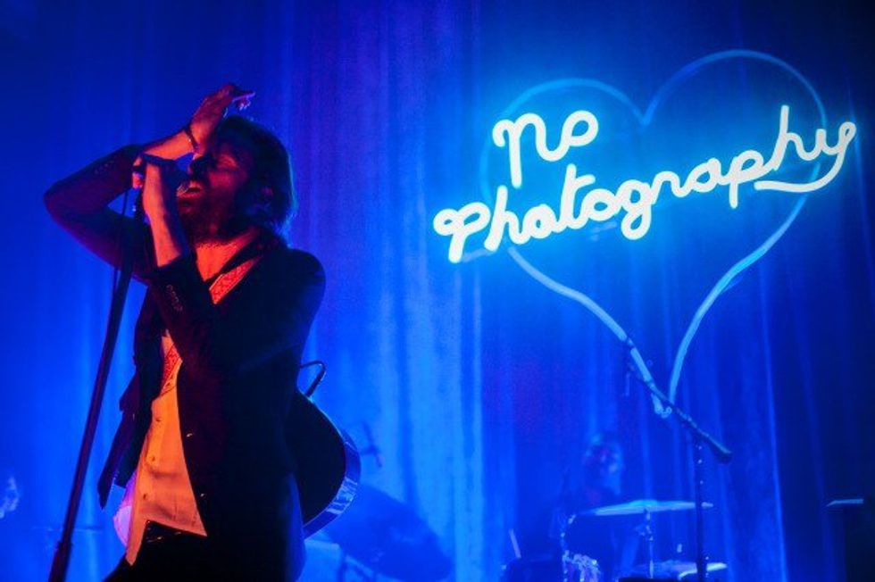 Recently, I ventured out with friends to experience one of my favorite artists perform, Father John Misty. After the opener finished, their small set-up was taken down and the stage was prepared for the main act. The only “decoration,” so to speak, took form of a large neon heart with the words “No Photography” in the middle. The huge, color-changing reminder really made me start thinking about experiencing life through a lens.