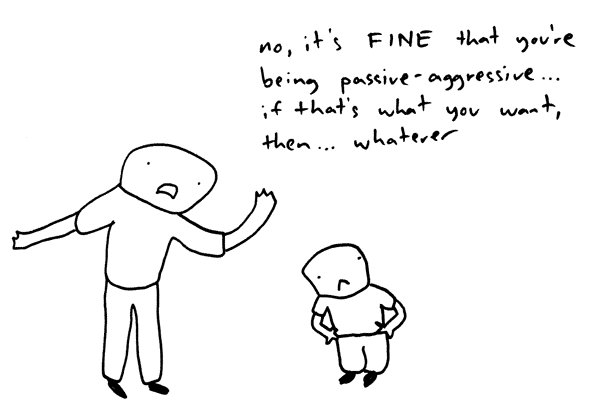 My high school friends, God bless 'em, had an interesting way of dealing with confrontation and arguments of all kinds. When one person was mad at another person in our group, it was taken out in the form of the dagger that females are famously good at throwing: passive aggression.