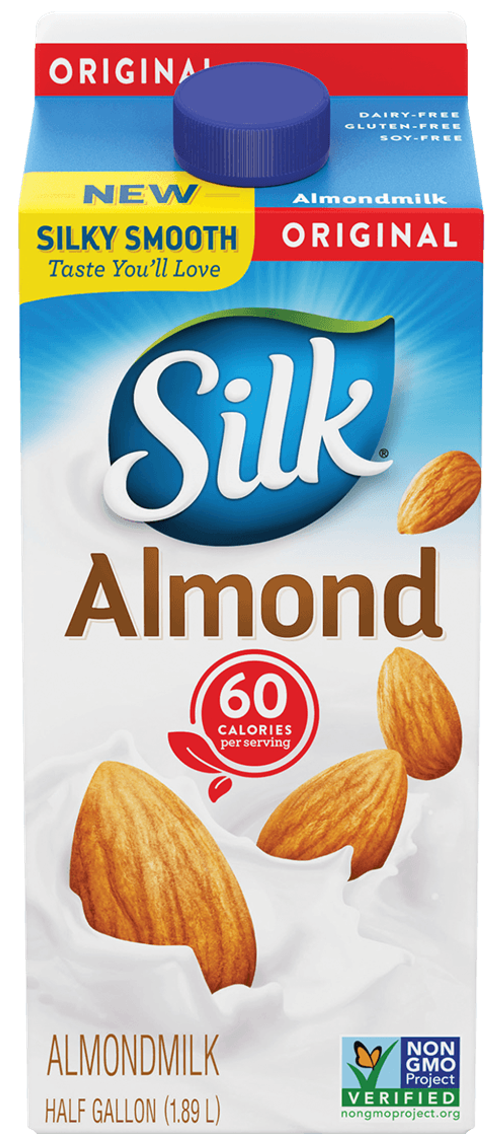 Almond milk is free of dairy, soy, lactose, gluten, casein, egg, and MSG. It has no cholesterol or saturated fat and is a great source of vitamin E. There are no artificial colors, flavors, and GMOs which is great. Finally, it has 50% more calcium than dairy milk and is only about 60 calories per serving which you can't really beat!