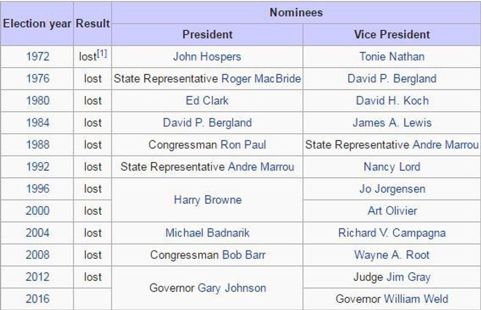For your entertainment, here is the list of United States Libertarian Party presidential tickets.