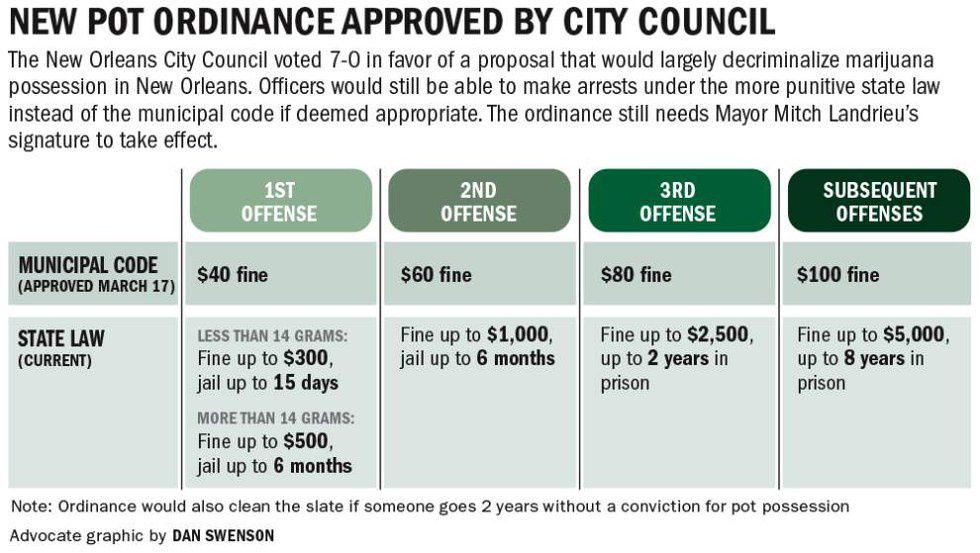How will police officers choose to follow city or state law? How will other law enforcement agencies fit into this new ordinance? State Troopers opposed the ordinance, but are meeting with NOPD and other officials this coming week to work out details. How will it be determined if someone is in “possession” or “possession with the intent to distribute”?
