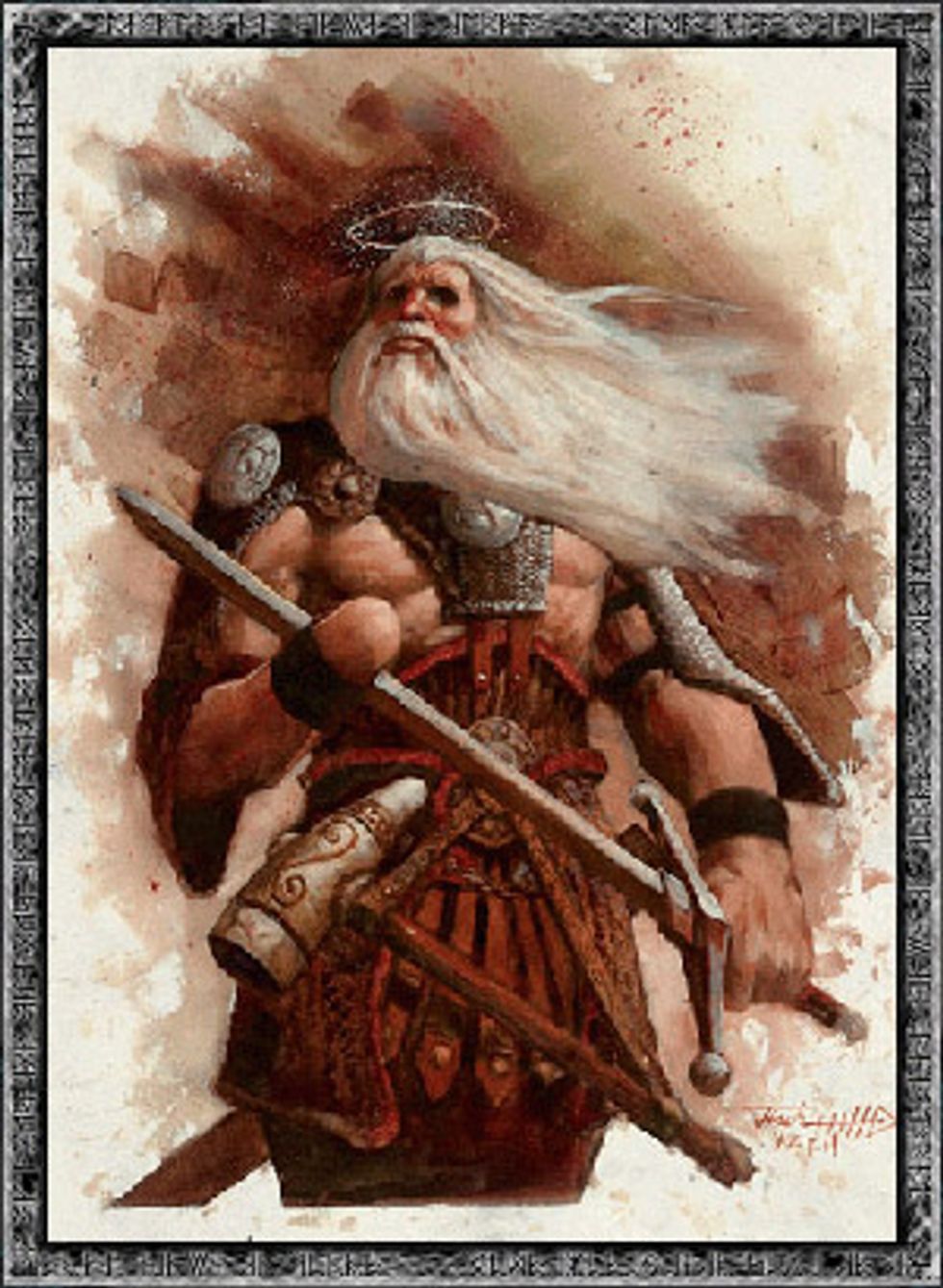 Tyr is best known for his involvement in binding Fenrir. The gods feared Fenrir’s growth in power, and so they went to him and offered to tie him up with rope as a game—gods liked weird games. Suspicious, Fenrir said that he would only agree to be tied up if one of the gods would put their hand in his mouth as an offering of goodwill and to ensure that he would have leverage to get out of the bindings. None of the gods were willing to do so since they knew Fenrir would get angry and bite down once he realized that he couldn’t get out of the bindings. Tyr was the only god willing to put his hand in the beast's mouth, and ultimately lost his hand in order to make sure that Fenrir would remain bound.