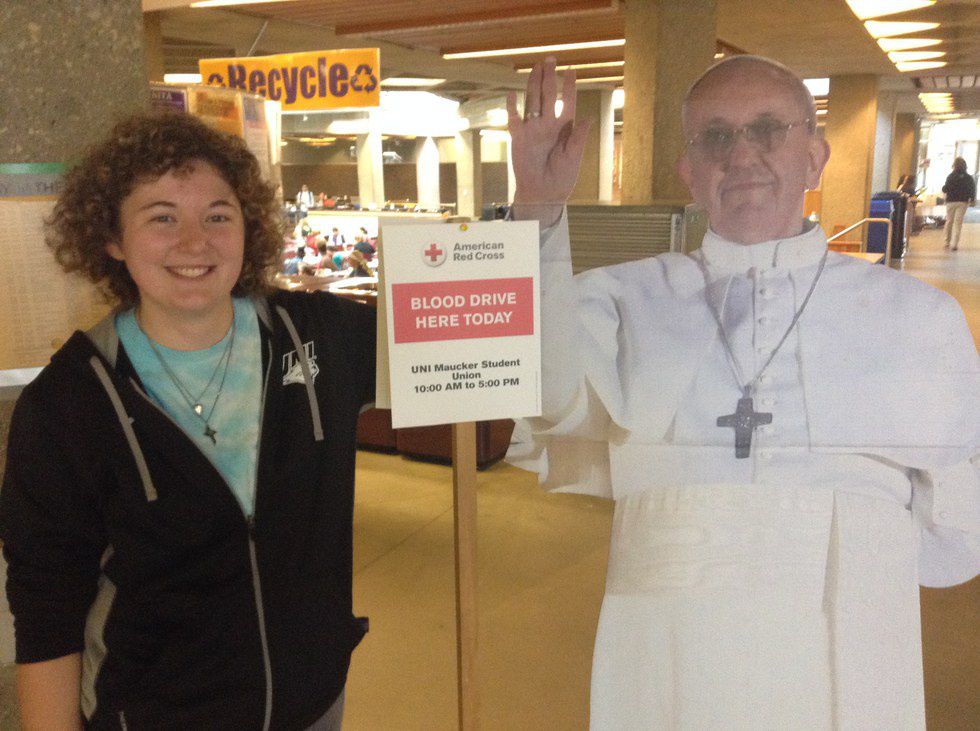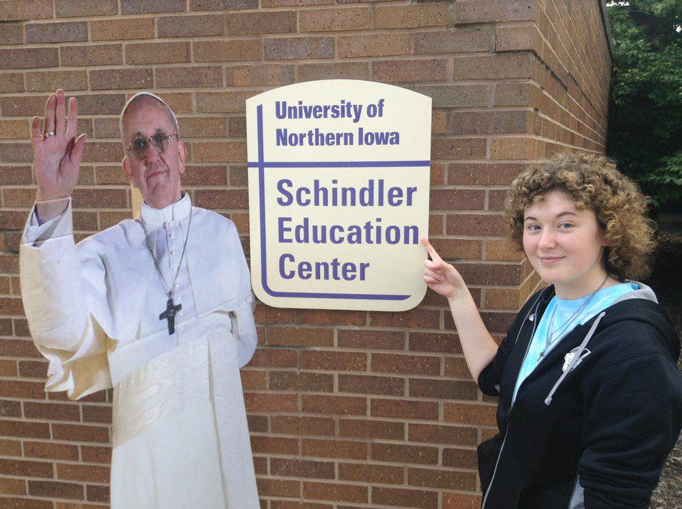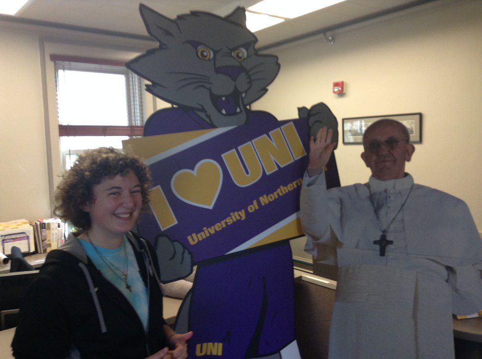 The Pope made a surprise visit to UNI while he was in America from Tuesday, Sept. 22, to Sunday, Sept. 27. Pope Francis is only the third Pope to set foot on United States soil. And (surprise!) he was right here on the University of Northern Iowa campus on Tuesday! (I bet you didn’t even know!) While we were showing him around the UNI campus, we discussed what the Pope supports.