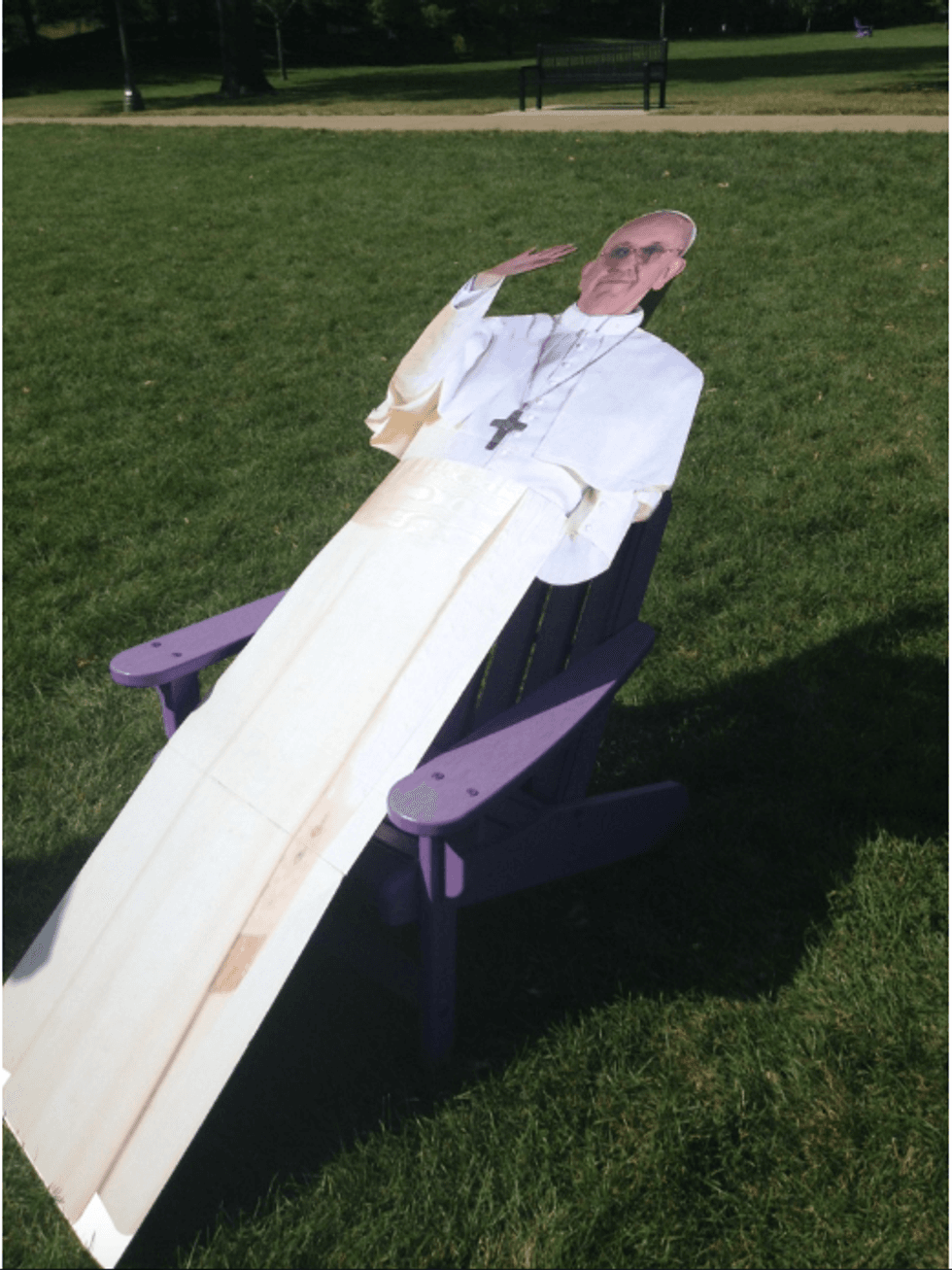 After awhile, the Pope needed a break and he got to hang out in one of the nifty Adirondack chairs that are all over campus.