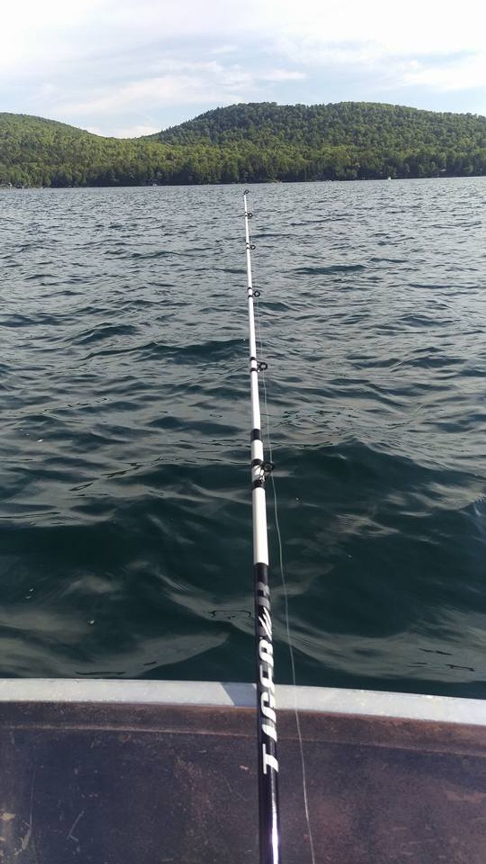 Just minutes from the condo we were staying in was a campground called Birch Point. Birch Point sat in one of the coves of Pleasant Pond, a beautiful lake near Island Falls. The lake was surrounded by huge hills and you could see the windmills in Oakfield in the distance. The water was rough, but it made for a great morning and early afternoon on the water. We only caught one fish in the four hours we were on the water, but I was happy to just spend some time with my honey.