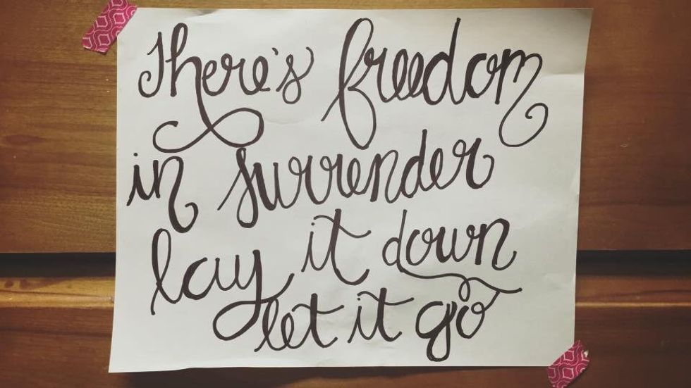 I say all of this to say that, whatever your chains are, give them to God, the only One who is capable of breaking them. "There's freedom in surrender. Lay it down, and let it go. When you're on your knees and an answer seems so far away, you're not alone; stop holding on, and just be held."