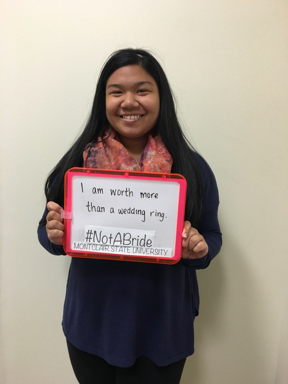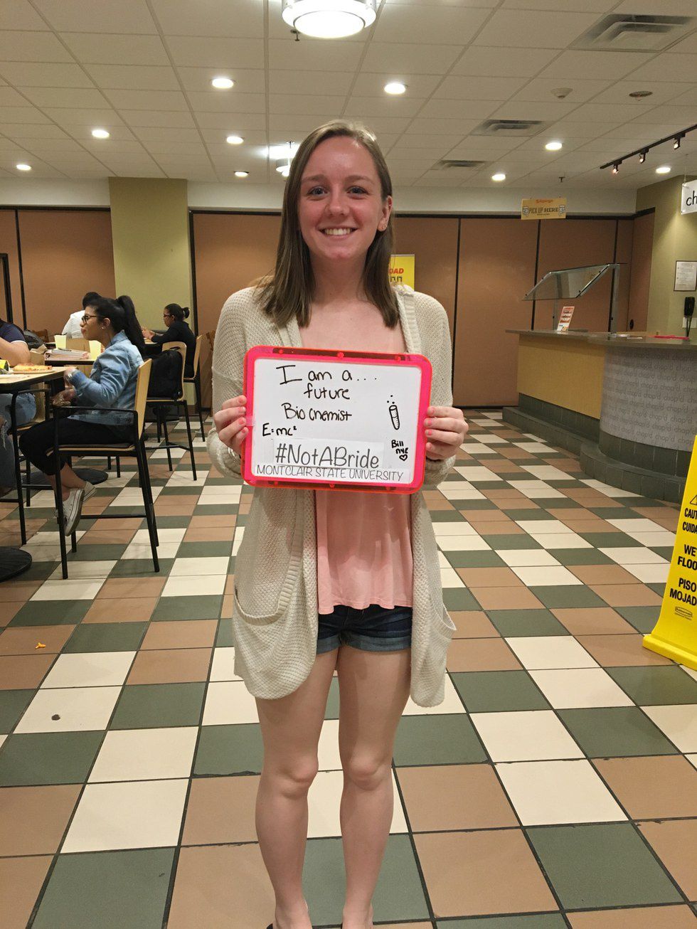 For the #NotABride project, we began by creating a twitter account, @notabride where we share facts, statistics, and articles about child brides. We have also created our own photo project, in this project, we have taken pictures of girls, of all different ages and on different college campuses holding up a whiteboard that says #NotABride.