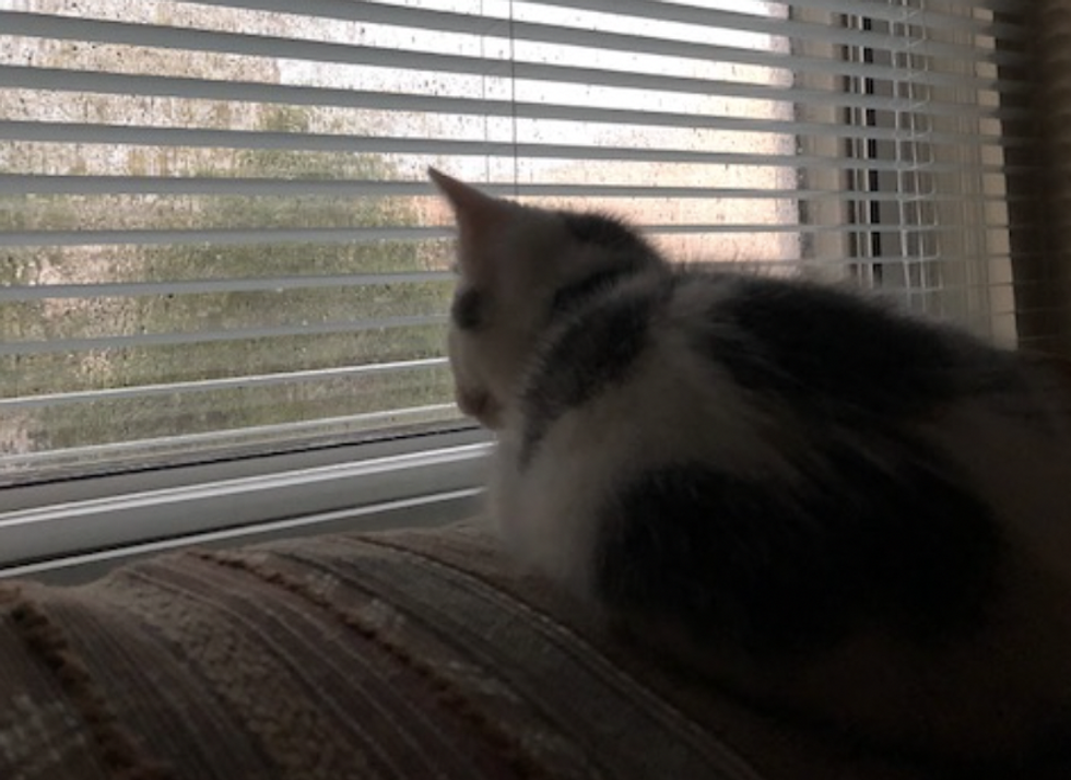 Staring longingly out the window, feeling the sunshine and reminiscing on happier times.