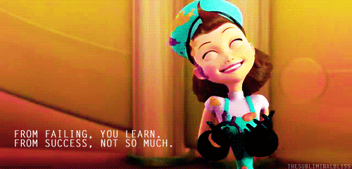 I totally understand it. I love Meet the Robinsons (please go watch it if you haven’t already) and the message it has about moving forward and learning from mistakes. You haven’t failed; you’ve simply figured out another way that does not work. There are a bunch of motivational quotes that I fully support, so long as they are being told to someone else. I see the merit and truth in such messages, but when it comes to my own life, I can’t handle it.