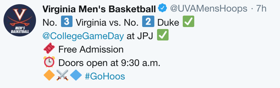 Alas, with over 100 sabre points, I was not awarded a ticket to the upcoming Duke vs UVA men's basketball game.