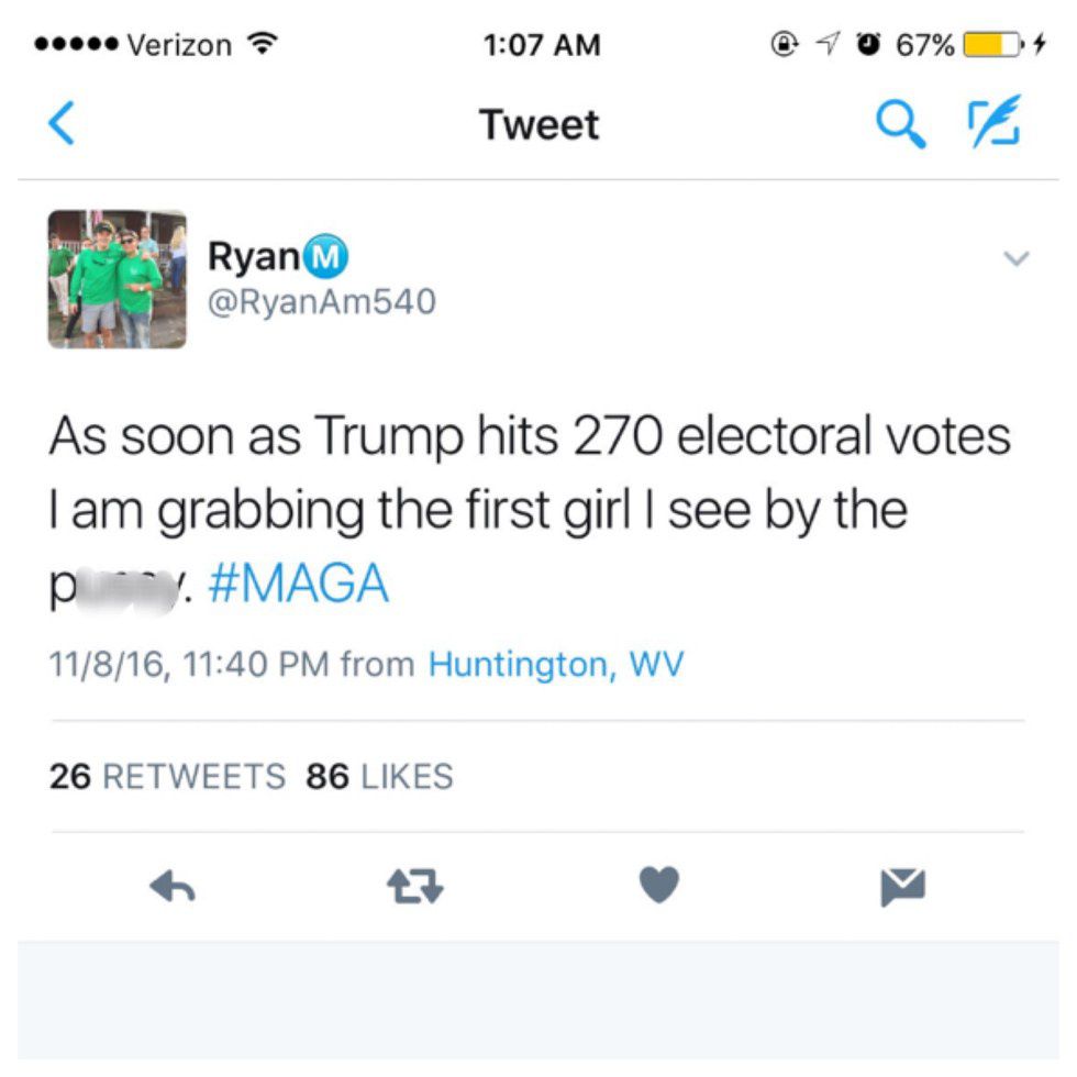 or the KKK appears on a bridge in Mebane, North Carolina, or when this video (VERY sensitive material) surfaces, showing that Trump supporters believe his platform embraces their radical views.