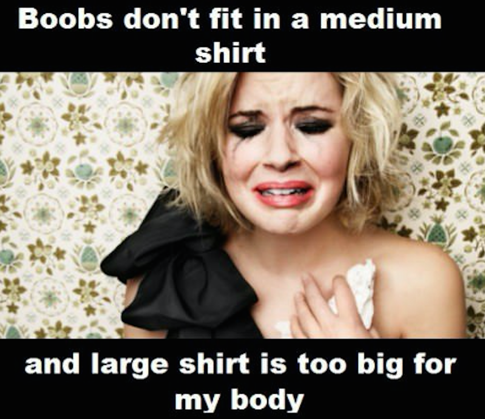 Boobs come with so many unfortunate skills -- they can build tents, hold your snacks for later, and make people want to hug you, but one of their best skills is that they double as a shelf. All you wanted to do was avoid gravity and give your boobs a little boost, but attempting to wear a push-up bra to give you a lift just turns your boobs into a shelf. So moral of the story, there is just no way to win if you are a blessed in the chest.