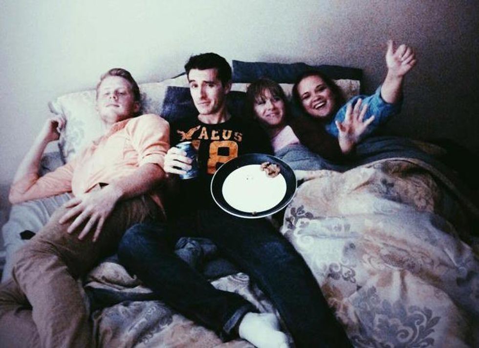 [Just awkwardly being a part of this photo from freshman year... Can we also talk about the popped collar?]