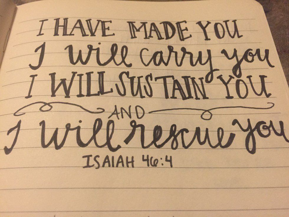 "I have made you, I will carry you, I will sustain you, and I will rescue you." Isaiah 46:4