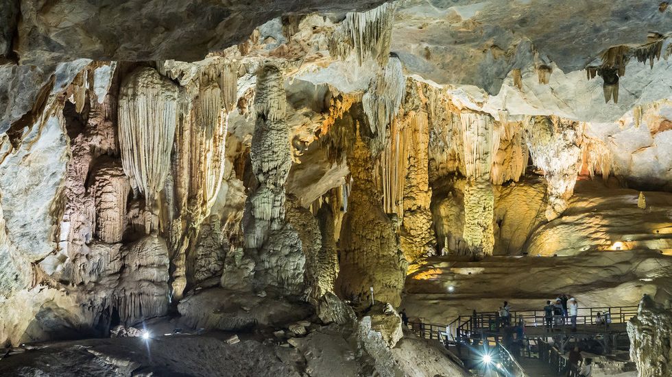 Down the ladder and through the narrow tunnels you crawl until at last you find yourself in a cavernous hole, surrounded by rocks and pools of water. Unfortunately, the tourism industry has not figured out how to install plumbing in a cave and you simply can't wait to go. You crouch behind one of the larger stalagmites and empty your bladder. Sweet release.