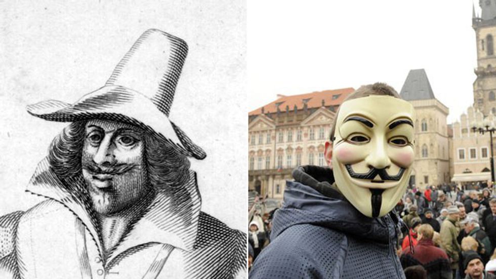 Who missed the memo that Halloween was in October? This mask is creepy. Sorry, Guy Fawkes.