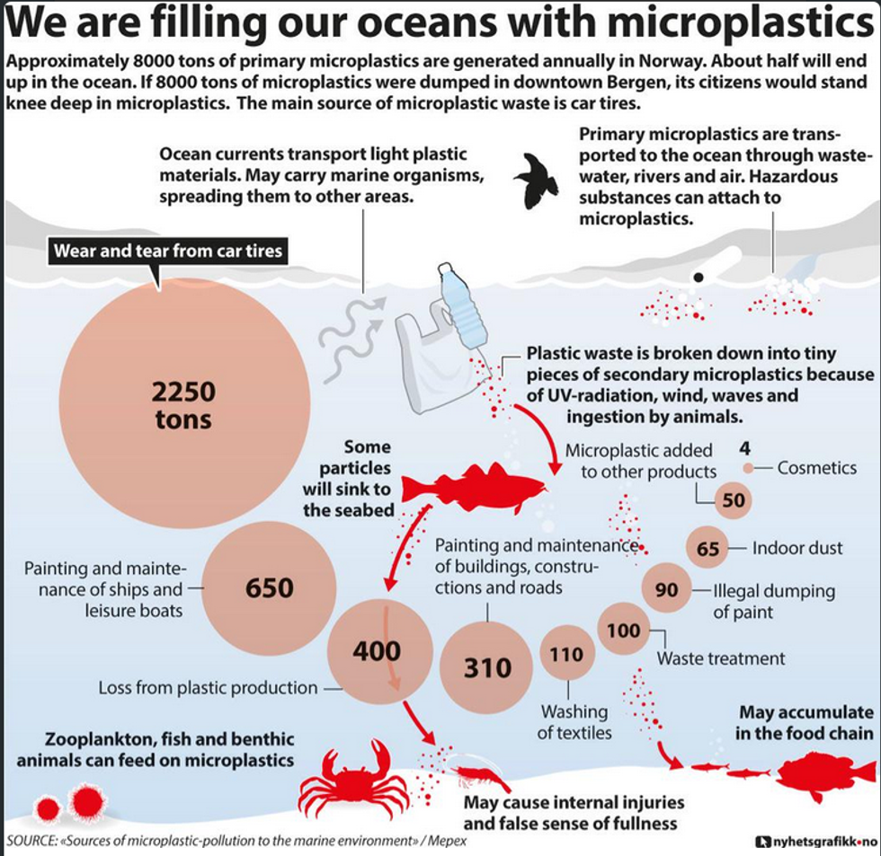 Once microbeads are unleashed into our waterways, they can make their way up the food chain all the way to the human level. You may be thinking there's no way the piece of cod fish I'm eating for dinner has been contaminated by plastic, but yes, chances are it has.