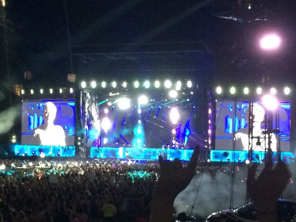 I'm reading a book for my english class, "Velvet Elvis" by Rob Bell. He makes a lot of good points, but in one part he says something that I thought I was alone in feeling: he feels God at concerts. He was at a U2 concert when he was 16, and he felt he "was going to spontaneously combust with joy." I believe it, because I've felt it.