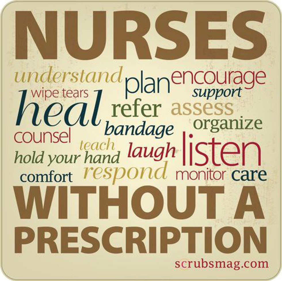 There are two approaches to take in addressing medical care: disease-centered and patient-centered. Doctors focus primarily on the former: assessing facts, diagnosing diseases, and treating conditions accordingly. This technical approach is universally familiar (and important!) in the process of healing. However, it drastically differs from an equally important patient-centered approach, a.k.a. the nursing process. This encompasses the personalized and holistic care of a person, rather than defining him or her as a medical condition. Nurses ensure your comfort and cleanliness, while simultaneously promoting your autonomy. They collaborate with doctors to individualize care plans based on your ethnicity, culture, and religion. They form genuine relationships with you and your family members. Nurses alleviate your concerns and constantly provide a reassuring, non-judgmental atmosphere. They advocate for your best interests, ensure you make informed and consensual decisions, and support you during your most vulnerable moments.
