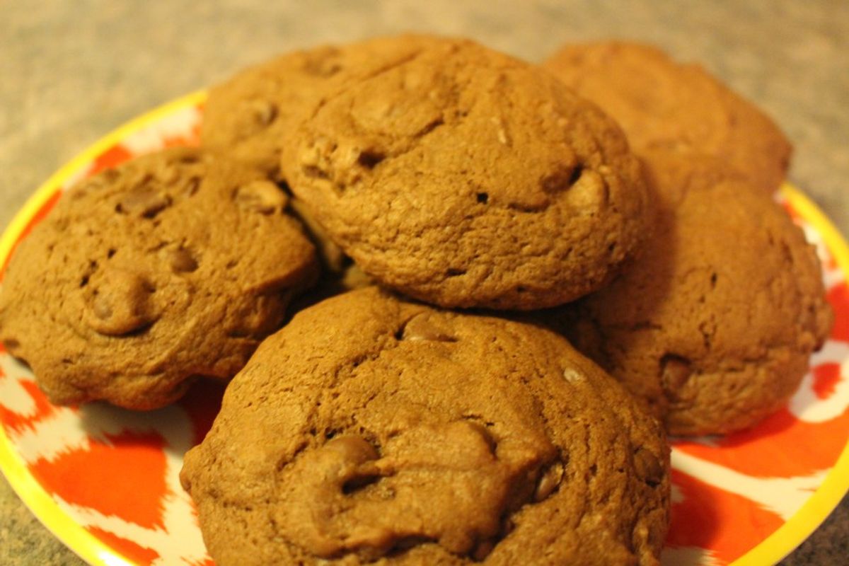 An easy recipe for amazing double chocolate chip cookies with a hint of hazelnut.