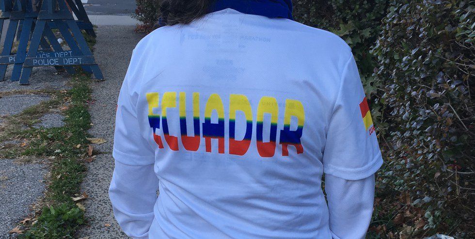 The former hairstylist, Cuenca native, and ultra marathoner scoped out a spot to spectate, cheer on her friend, and possibly jump in the race, too. She was clad in a personalized long-sleeve track shirt, printed with her name “Helen” and the Ecuadorian flag.