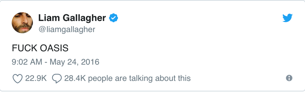 The brothers have been quite candid about their disdain towards each other over the years. Their dynamic was put quite beautifully in an interview in their documentary Supersonic where Liam says, “One night I come in pissed and I couldn’t find the light switch so I pissed all over [Noel’s] new stereo. I think it basically boils down to that.” Now while that may seem a bit unsavory to some, stereos are replaceable and nothing can really break the bond that brothers hold, right? Could there still be hope?