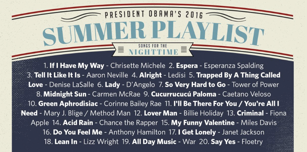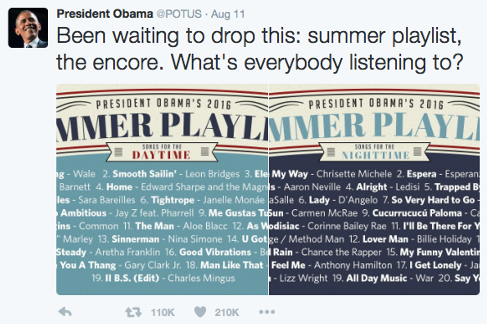 In the past, Obama has shared his taste in music with other playlists of last summer, his 2012 campaign, and 2013 inauguration.