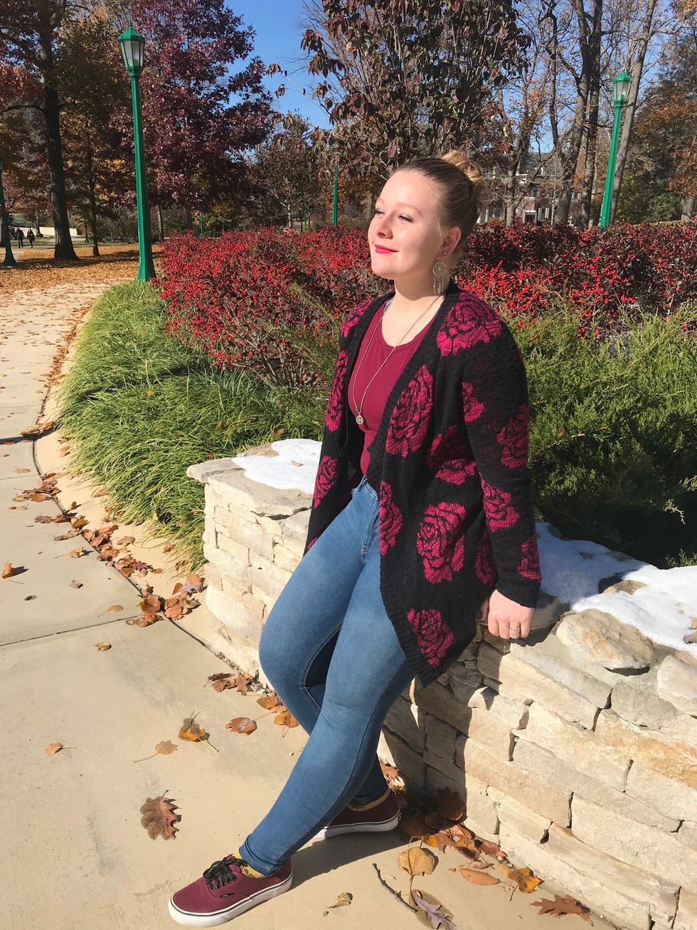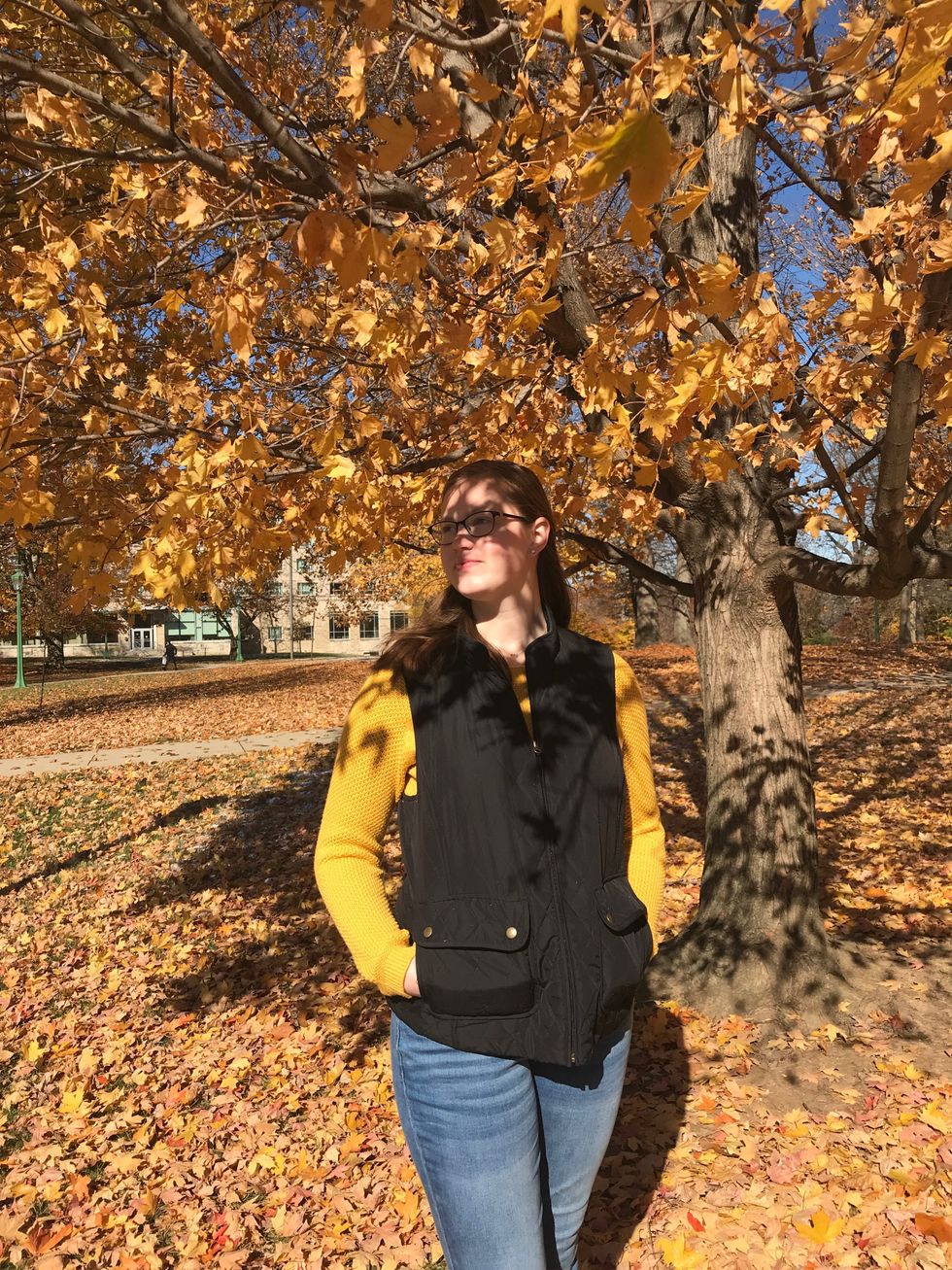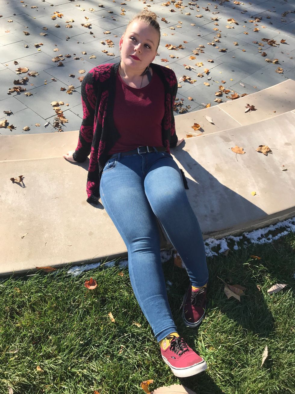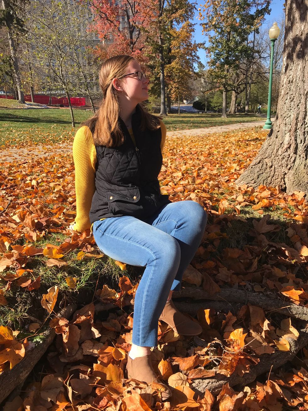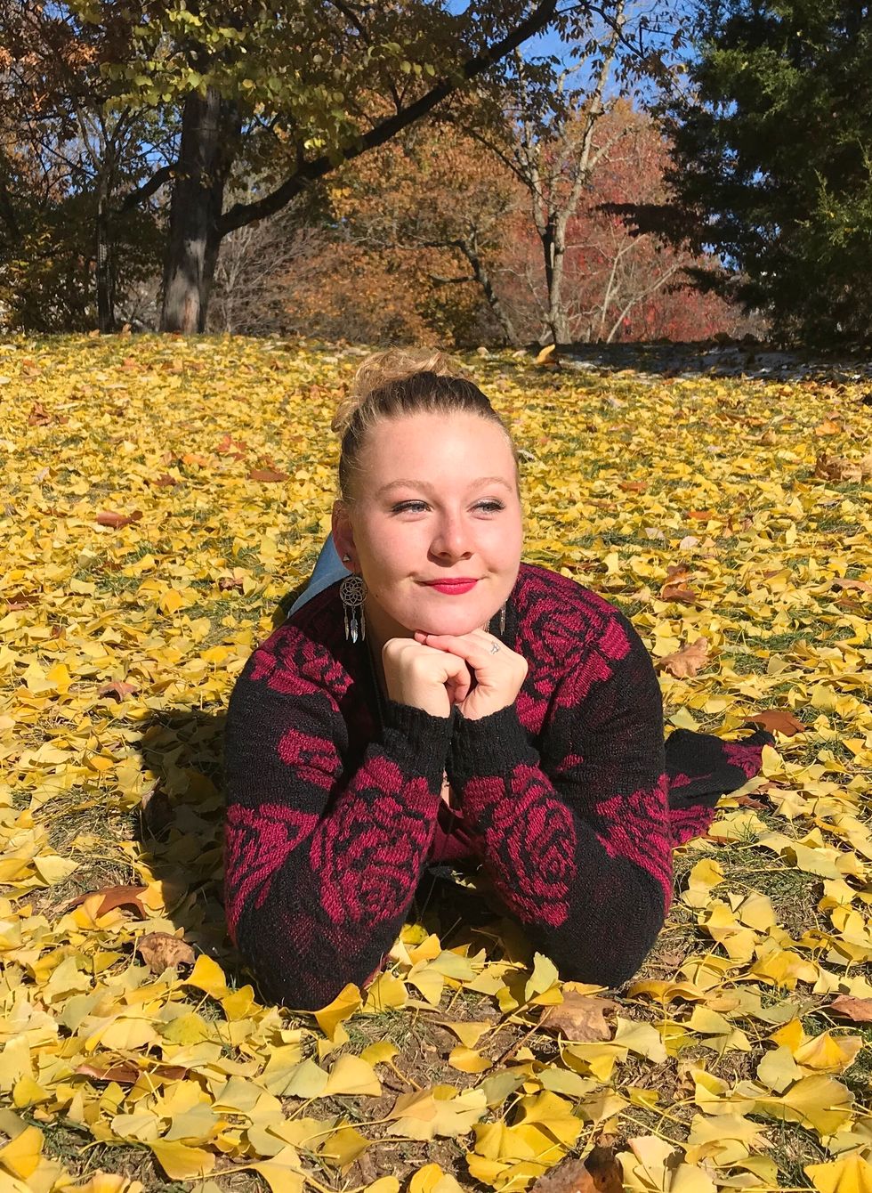 The more leaves fall, the more I want to have photoshoots. This large pile of yellow leaves was beautiful, and this made all poses to be on the ground but it added more attention to her. We all were like we need this spot.