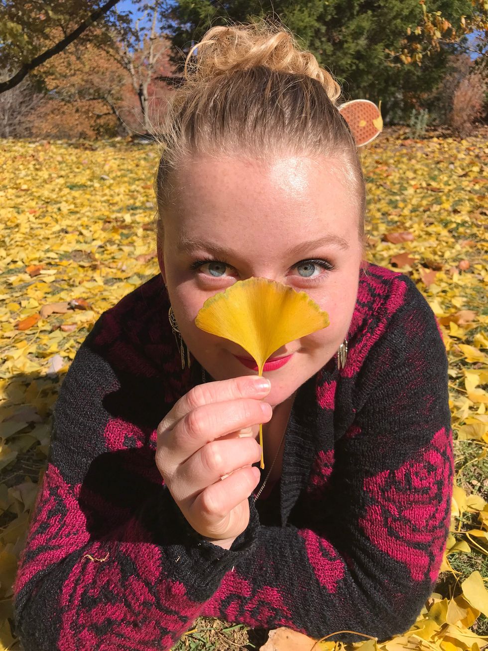 Ever since fall came, I obsessed with leaves. I've realized there a lot of variety of shapes and colors of leaves which are crazy how they come so different. The leaf brings more focus to your face and pops your eyes even better. But you can do many different poses with a leaf in your face because it brings more focus to your face.