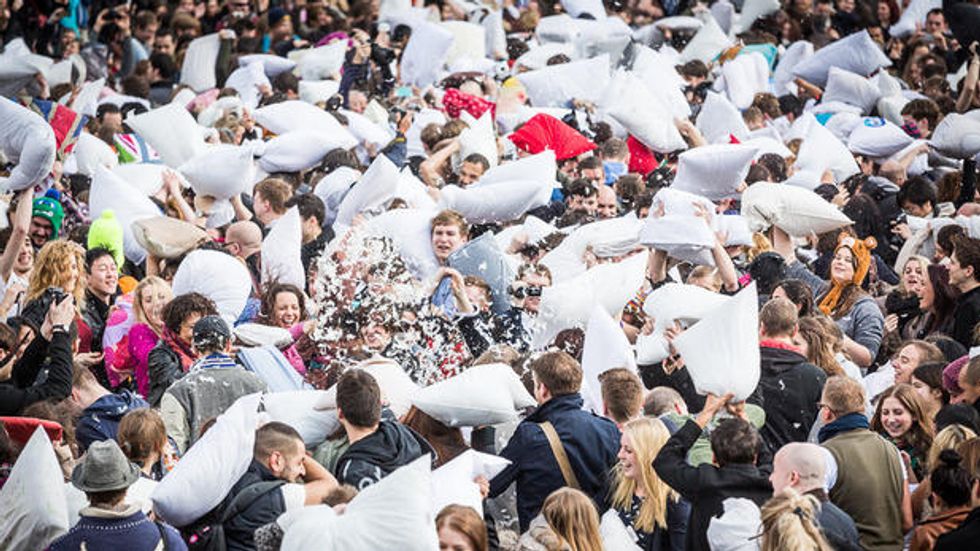 It may be a pillow fight, but it won't be taking place in your bedroom. In fact, the founders of International Pillow Fight Day, did so to help people get outside, socialize, and transform city parks into urban playgrounds.