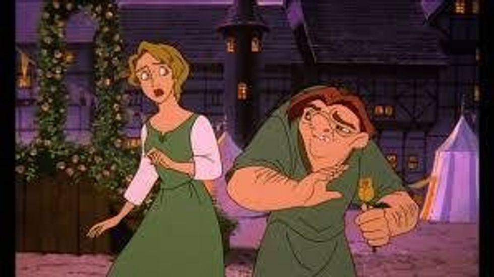 Additionally, I am pretty sure that the entire movie was created on a five dollar budget. The film is so carelessly thrown together that the skin tones and eye colors of the characters do not even remain consistent. There are gaping plot holes -- including the villain musician knowing Quasi's name before meeting him and Quasi creating a figurine of Madellaine, his love interest, wearing a dress she has yet to wear in front of him. Either Quasimodo is a psychic or the creators were too distracted with the more important parts of the plot line like the witty jokes Quasi and Madellaine exchange. Jems like "Hocus their Pocus" were obviously more important than logical consistency.