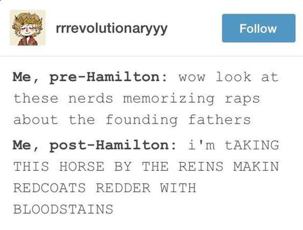 Man, I just know Lin-Manuel Miranda had a task on his hands to accurately depict American history while integrating modern artistry. He is a genius, and you should not be ashamed of your music taste.