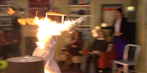 This unique episode allows the story to unfold room by room, each bit ending with a screaming human fireball disrupting the scene.
