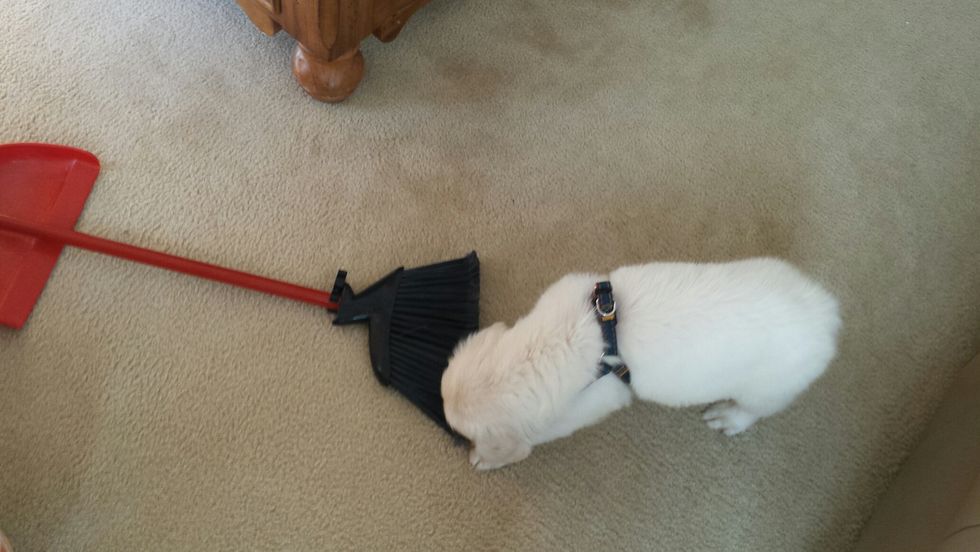 It's hilarious to watch him attack the broom like its this evil thing.