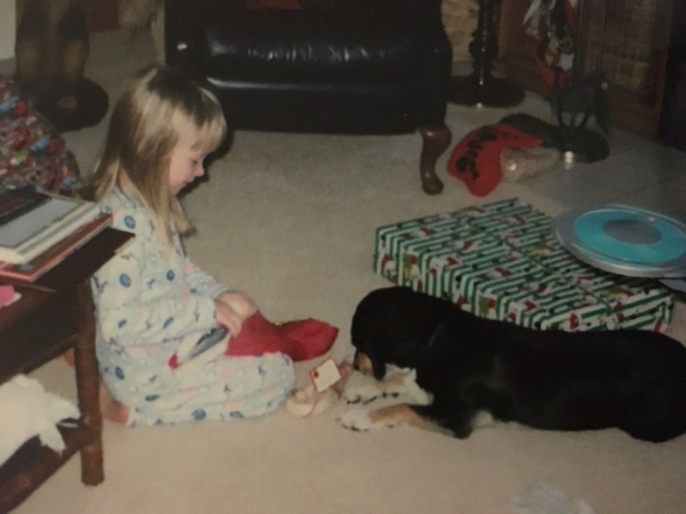 Many of these nights revealed my canine hero’s kryptonite, however, which manifested in roaring thunder and cracks of lightning outside. Whenever a storm began, Wiggles would begin shaking, whimpering, and jumping on anyone around her to alarm them of the madness. During these nights, our roles reversed- I would hold my hero and stroke her back until we both fell asleep, learning that even the strongest figures in my life had fears and weaknesses of their own.