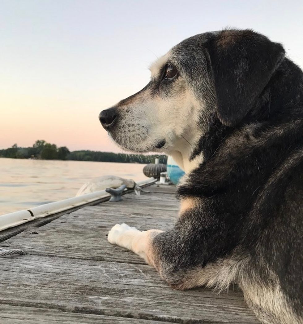 During her last year, Wigs would spend most of the day sleeping or simply relaxing at my feet. To get her some exercise, I often walked her to a library near my house, where she could catch her breath outside while I searched for some summer reading material. These warm months were my last with my girl- we spent multiple nights sitting at the end of the dock, me kicking my feet in the water and her calmly peering at the fish she once went berserk over.