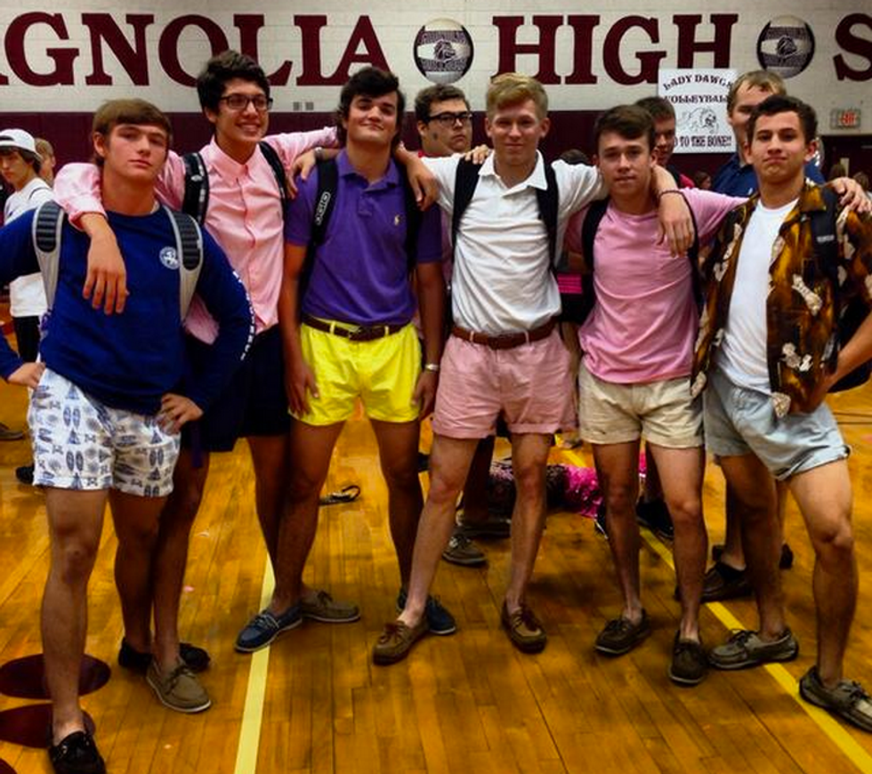 Now, I come from Williamson County, the land of higher education and even higher crew socks. While I was in high school every guy was required to own a pair of Sperry’s, unless you played basketball and then you were allowed to wear “socks with slides” which is basically the socially acceptable version of socks and sandals. My junior year the Polo “Horsepower” movement took the upperclassmen boys by storm. Seemingly over night my school went from dressing like we dressed ourselves at 5 am (because we did) to color coordinating our Oxfords with our 6” inseams that were barely long enough to be within dress code. I actually witnessed guys get dress coded for wearing shorts that were too short. This was just part of the experience of attending a public school where people let their Frat Flags fly on a daily basis.