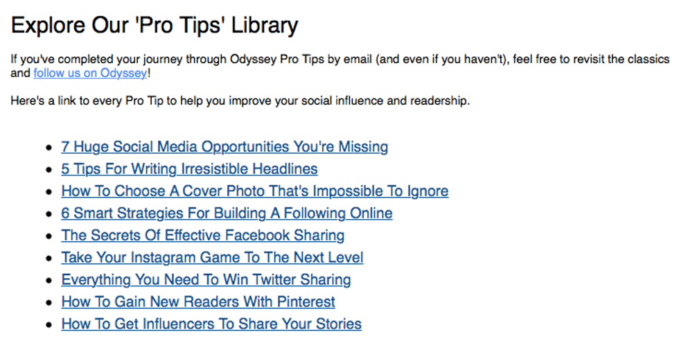 All of Odyssey’s “pro tips” are not about how to write good content, they are about how to share the content that you produce. Often articles are not about what the person cares about, but about what will get the most views. Most jobs, in general, reward based on the amount of time spent working toward a goal. I would rather see Odyssey reward consistency or quality rather than sensationalization. Writers should not feel the need to rely solely on pop culture references to get more views.