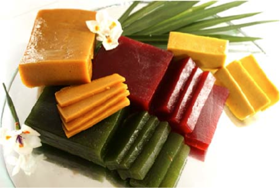 My family loves this one, we always eat it with grapes and cheese. They can be very sweet after awhile of eating them, that's why we make an equilibrium with the grapes and the cheese. This candy or dessert is very soft and sticky. The base is made with quince and then it's mixed with other fruits/flavors like guava (my favorite), apple, pear, pumpkin, and others.