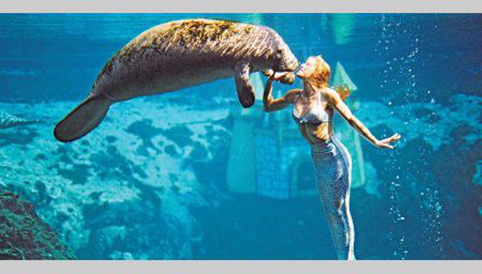 Your eyes do not deceive you, that is a mermaid kissing a manatee. At Weeki Wachee they have mermaid shows with the manatees of the park. They have boat tours, animal shows for all ages and kayak trails.