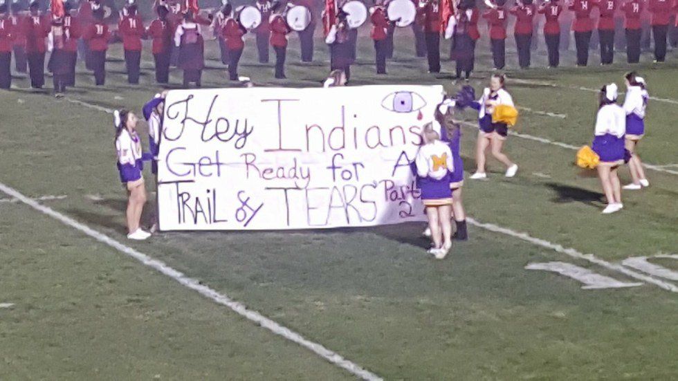 On Friday October 28th, the cheerleaders of McClain High School held up a banner that read "Hey Indians, Get ready for a Trail of Tears Part 2" at a football game against Hillsboro High, whose mascot is the Indians. The banner went viral and drew backlash on social media.