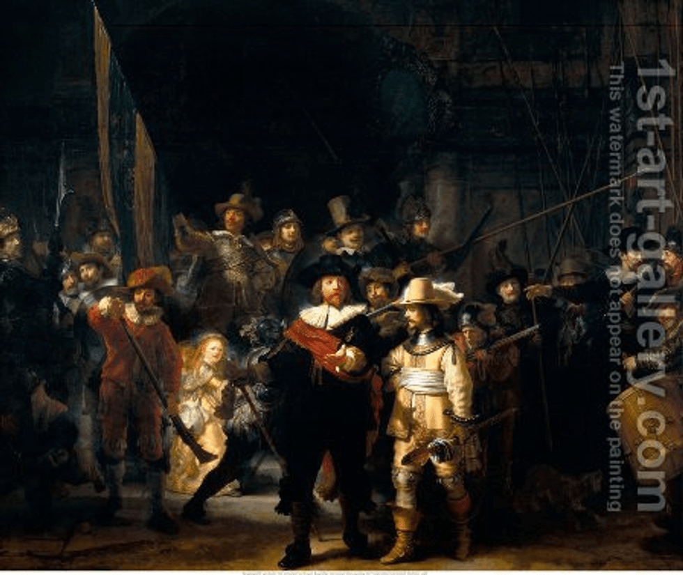 The Nightwatch, one of the famous artist Rembrandt van Rijn paintings, remains a national treasure in Dutch history. It is also known as the 'altarpiece' of the Rijksmuseum. It is a critical cultural artefact painted in the Dutch Golden period to show the Dutch militia seeking independence from the Spanish empire: it depicts the company of Captain Frans Banning and his lieutenant, Willem Van.