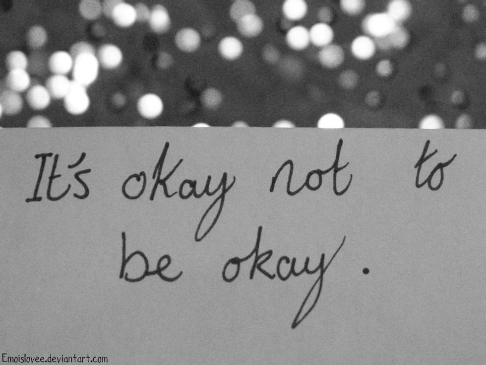 Let's get something straight — It is okay not to be okay. Life isn't always easy- most of the time it's very difficult. The world is not always kind, or fair and a lot of the time —it doesn't seem like anything is going to work out correctly. The events in our life, both good and bad, we learn from. Take it one step at a time, and comprehend that sometimes things are not okay.