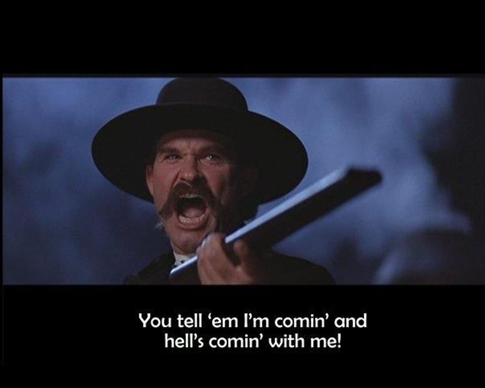 Wyatt Earp.There's not a more perfect meme for OK State. Tombstone is a pretty great thing and possibly one of the best ways to kick off a home football game. "You tell 'em I'm comin' and Hell's comin' with me!"-- perfect motto for kickoff on the field and for a night on the strip.