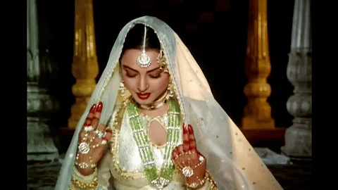 Fun fact: I’m so in love with Rekha in this movie that the lock screen of my phone is the very chromatically pleasing, red-hued, movie poster of Umrao Jaan. A film by Muzaffar Ali.