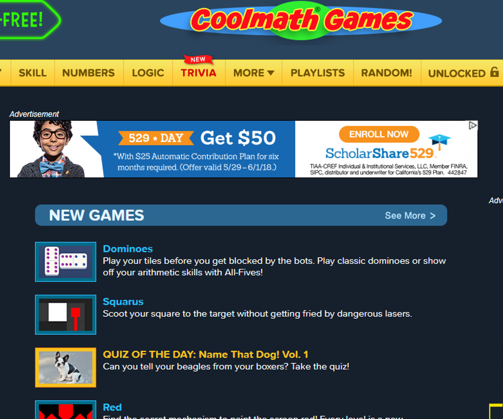 Contrary to what the name suggests, most of the games on this site have nothing to do with math. It has flash games galore, and it's unassuming setup doesn't do justice to the plethora of entertainment inside.