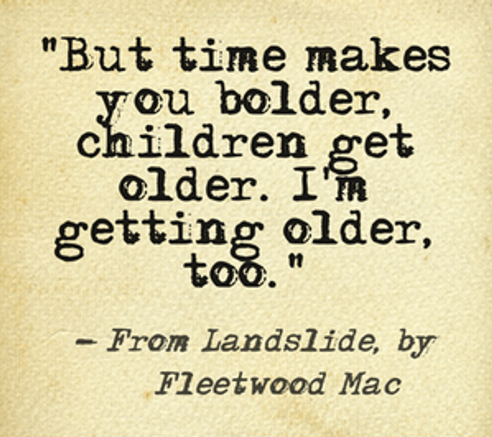 1. I can appreciate the lyrics and really feel see the bigger picture. When I look out over the mountain, I think of one of my favorite songs, Landslide, by Fleetwood Mac. “Time makes you bolder even children get older, and I’m getting older too.” I’ve gotten a lot of “You’re too young to think about that stuff,” but that’s what has taught me the concept of life.